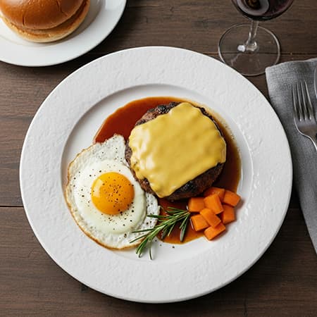 ▲ハンバーグと目玉焼きがドーン!