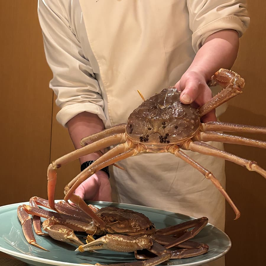 店内に入ると、さっそく料理人の方が立派な越前蟹を見せてくださいました!