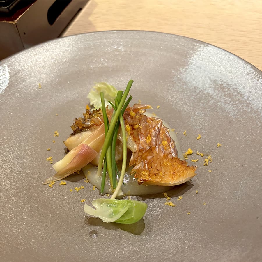 うろこがついたまま焼かれていて、パリパリした食感が楽しくて美味しかったです。