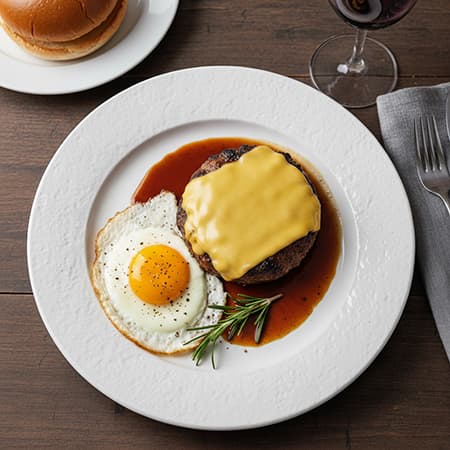 最初に入力した【プロンプト】は、「お皿の上に乗ったハンバーグ」