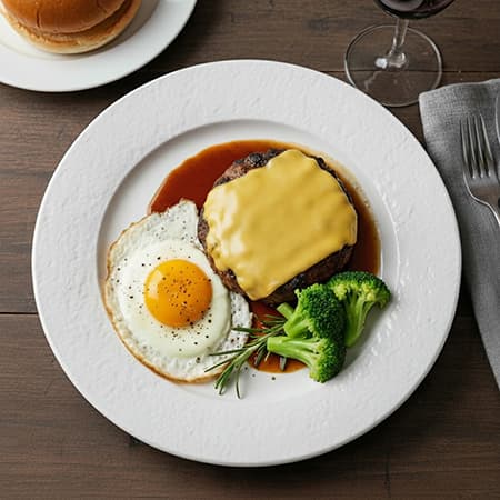 ▲ハンバーグと目玉焼きがドーン!