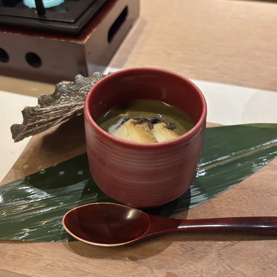 アワビとシロキクラゲを使った茶碗蒸しで、優しい味でおいしかったです!
